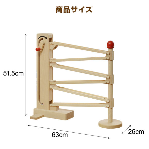 木製レールの上をミニカーが駆け下りる! 見ていて楽しいクルリンエレベーター 木製レールの上をミニカーが走るクルリンエレベーター。